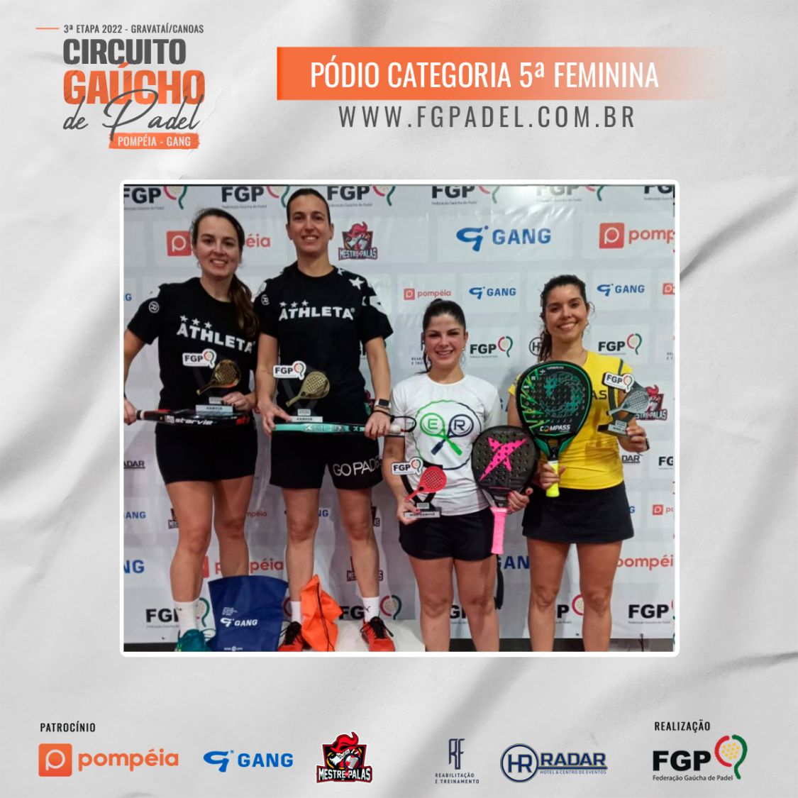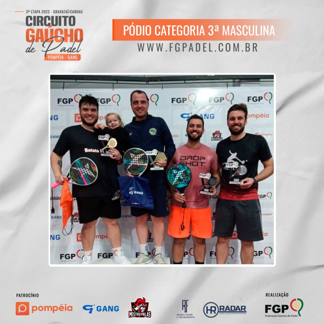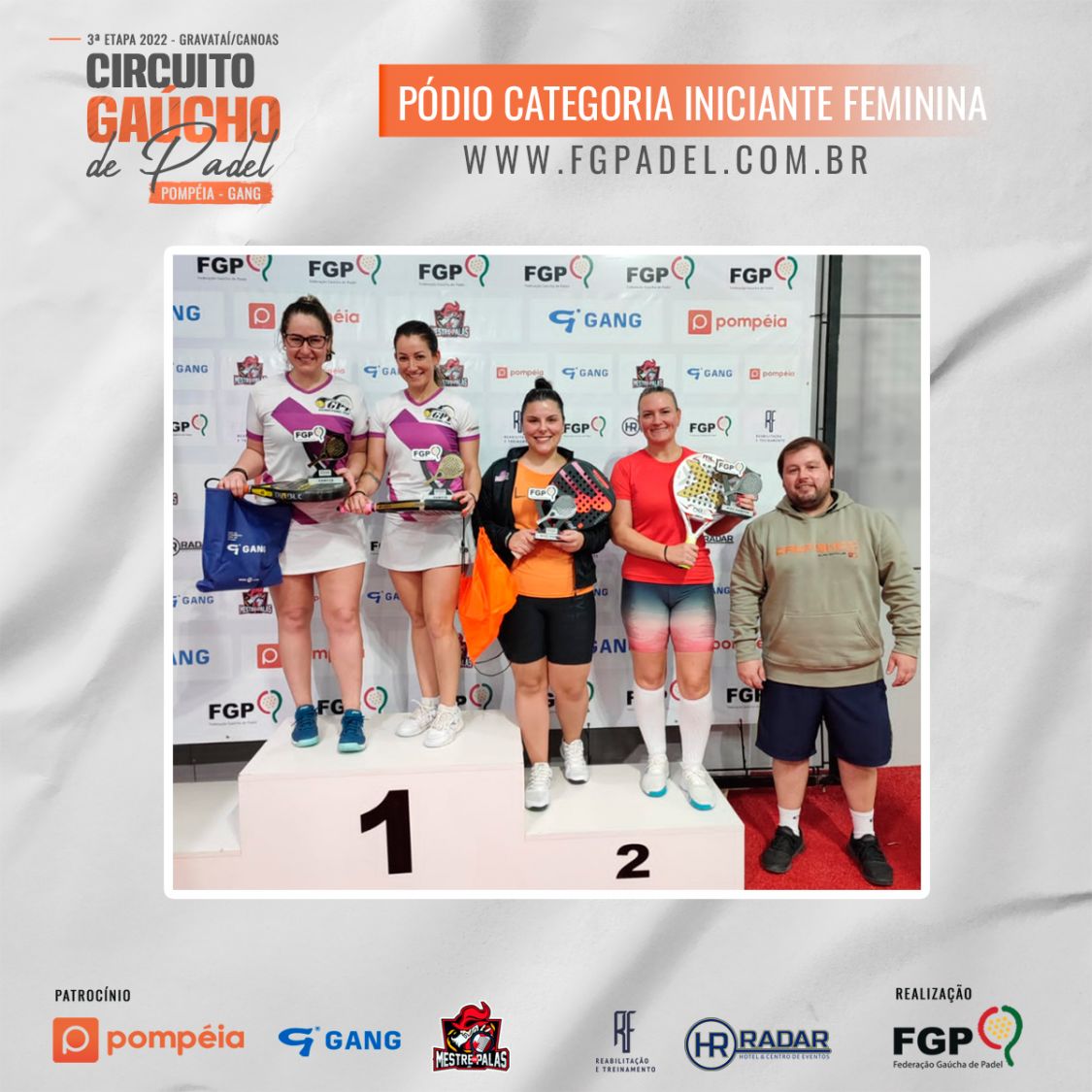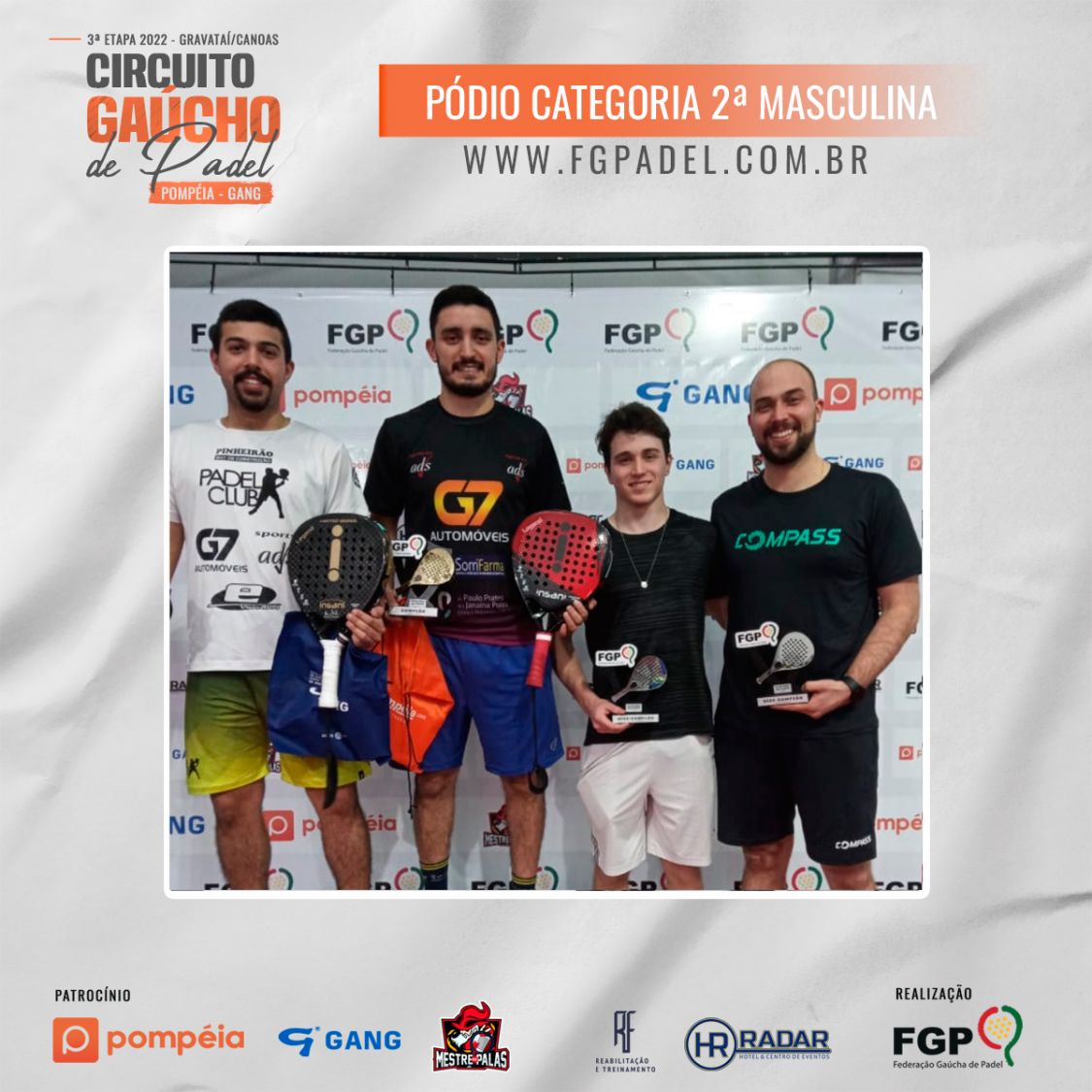 Confira os campeões e vices da 3ª etapa do Circuito Gaúcho de Padel 01/09/2022 LEIA TAMBÉM Campeões do Ranking Gaúcho de Padel 2023 Comunicados aos atletas da 1ª categoria Masculina e Feminina Atenção! Participe do Cadastro Anual de Clubes e torneios do RS