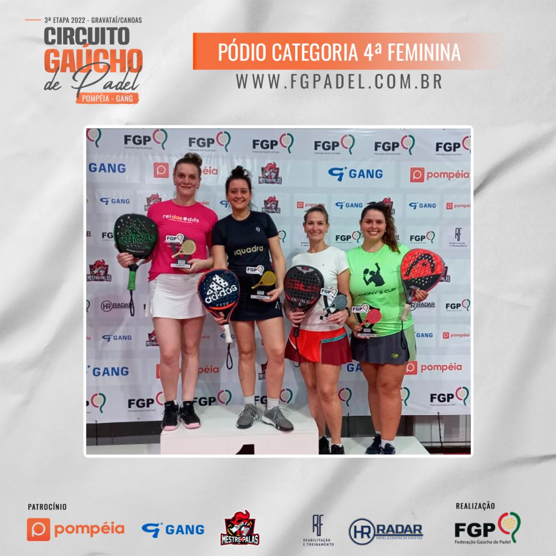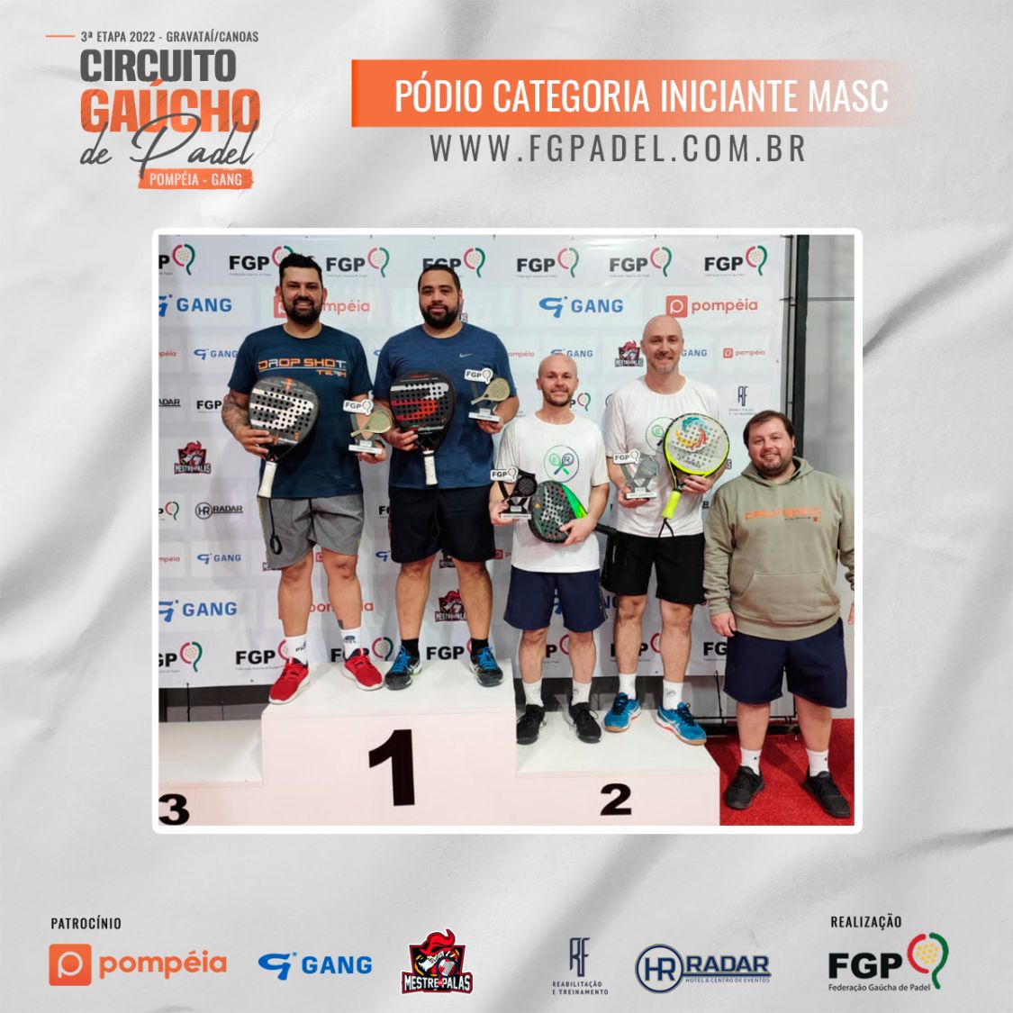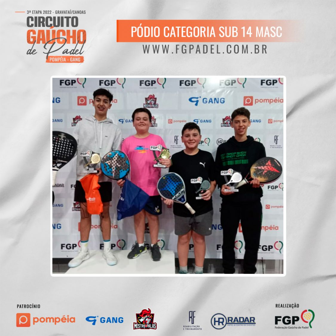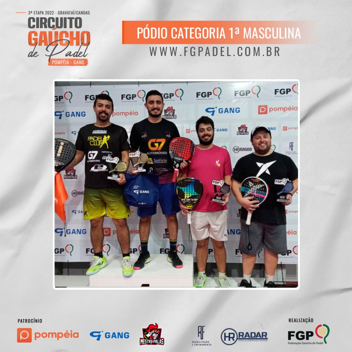 Confira os campeões e vices da 3ª etapa do Circuito Gaúcho de Padel 01/09/2022 LEIA TAMBÉM Campeões do Ranking Gaúcho de Padel 2023 Comunicados aos atletas da 1ª categoria Masculina e Feminina Atenção! Participe do Cadastro Anual de Clubes e torneios do RS