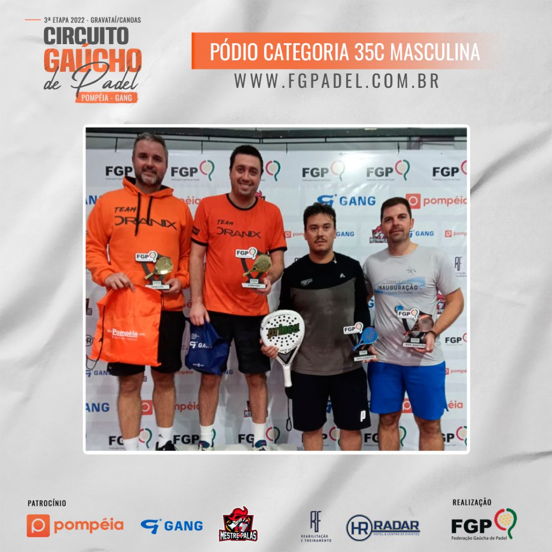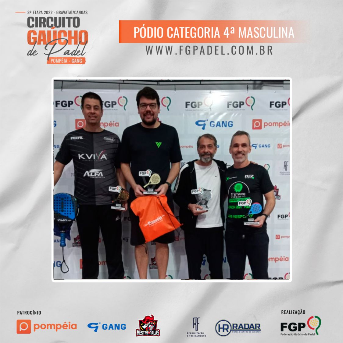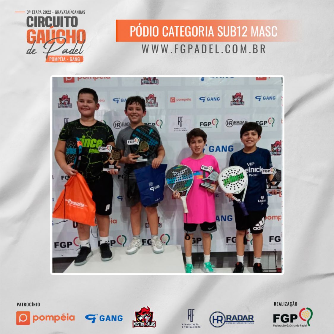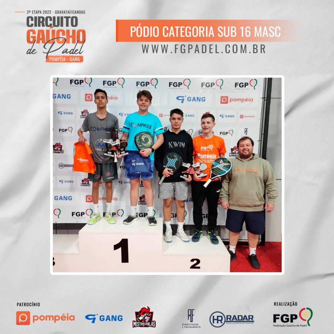 Confira os campeões e vices da 3ª etapa do Circuito Gaúcho de Padel 01/09/2022 LEIA TAMBÉM Campeões do Ranking Gaúcho de Padel 2023 Comunicados aos atletas da 1ª categoria Masculina e Feminina Atenção! Participe do Cadastro Anual de Clubes e torneios do RS