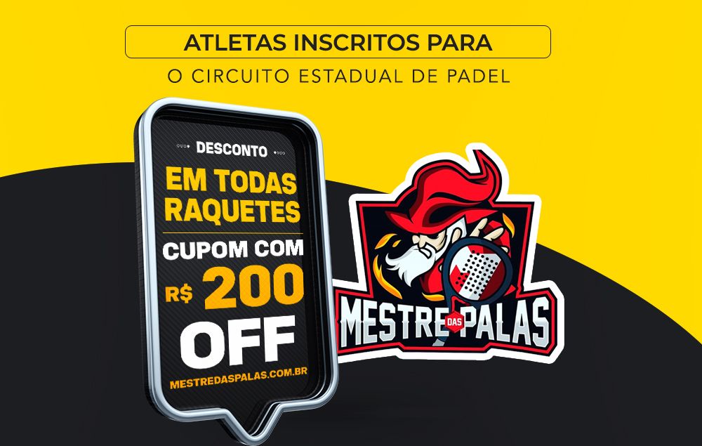 Para atletas inscritos (com envio do comprovante*) receberão um cupom desconto de R$ 200,00 para compra de qualquer raquete no site do Patrocinador.